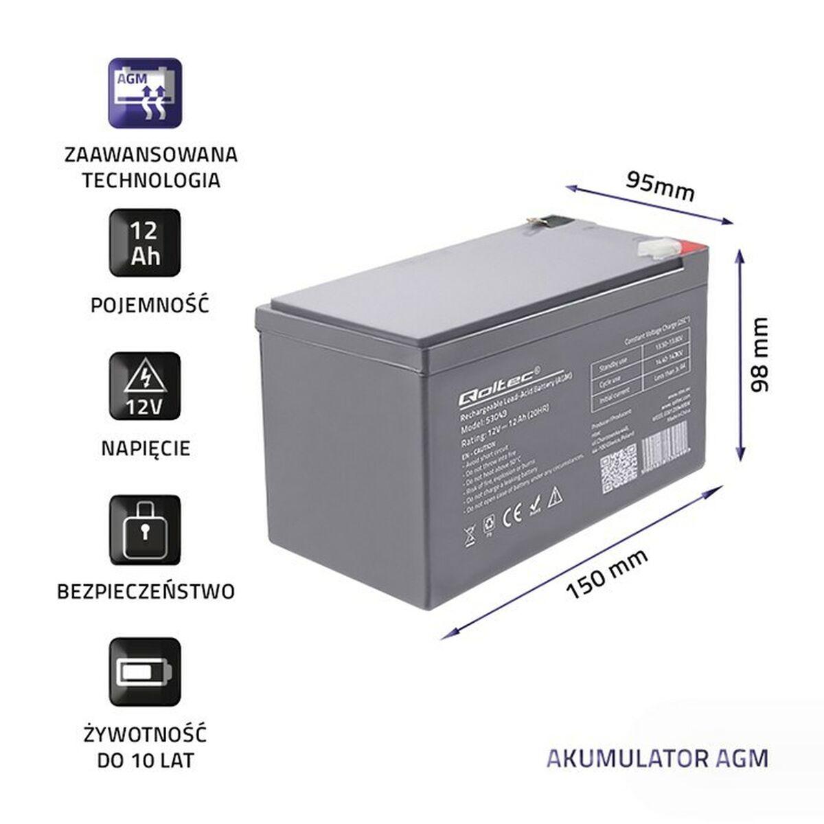 Batería para SAI Qoltec 53049 12 Ah 12 V