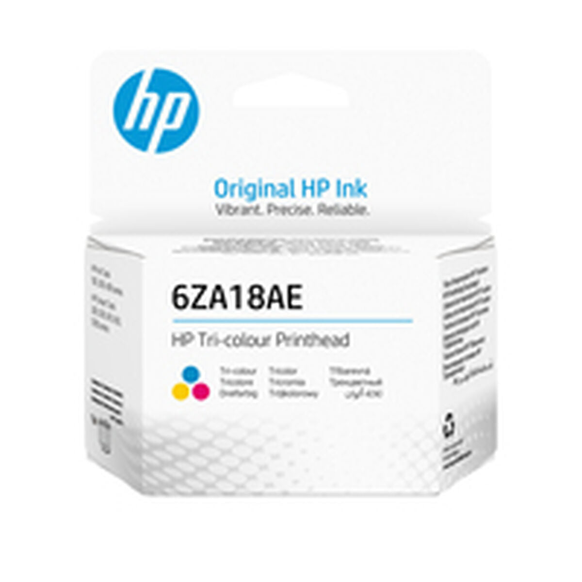 HP Cabezal de impresión 6ZA18AE tricolor. Compatibilidad: Los cabezales de impresión HP GT funcionan con: HP Smart Tank 455, 457, 5100, 555, 559, 570, 655..., Tecnología de impresión: Inyección de tinta térmica, Colores de impresión: Cian, Magenta, Amarillo. Ancho: 113 mm, Profundidad: 37 mm, Altura: 115 mm. Ancho del paquete: 116,3 mm, Profundidad del paquete: 36,5 mm, Altura del paquete: 100,9 mm. Número de cajas de cartón por palé: 40 pieza(s), Cantidad por palé: 2400 pieza(s), Número de capas por palé: 5 pieza(s). Dimensiones del palé (Ancho x Profundidad x Altura): 1198,88 x 1016 x 845 mm, Dimensiones de Palé (Ancho x Profundidad x Altura): 1198,9 x 1016 x 845,1 mm (47.2 x 40 x 33.3"), Peso de palé: 182,2 kg (401.7 libras)