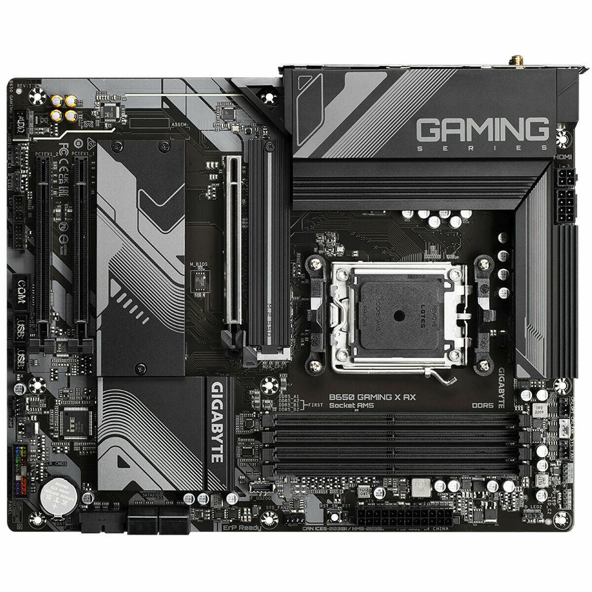 Gigabyte B650 GAMING X AX. Fabricante de procesador: AMD, Socket de procesador: Zócalo AM5, Procesador compatible: AMD Ryzen™ 5, AMD Ryzen 7 7th Gen, AMD Ryzen 9 7th Gen. tipos de memoria compatibles: DDR5-SDRAM, Memoria interna máxima: 128 GB, Tipo de ranuras de memoria: DIMM. Interfaces de disco de almacenamiento soportados: M.2, PCI Express 4.0, SATA III, Tipos de unidades de almacenamiento admitidas: HDD & SSD, Niveles RAID: 0, 1, 10. Máxima resolución: 4096 x 2160 Pixeles. Conector USB: USB tipo A, USB Tipo C