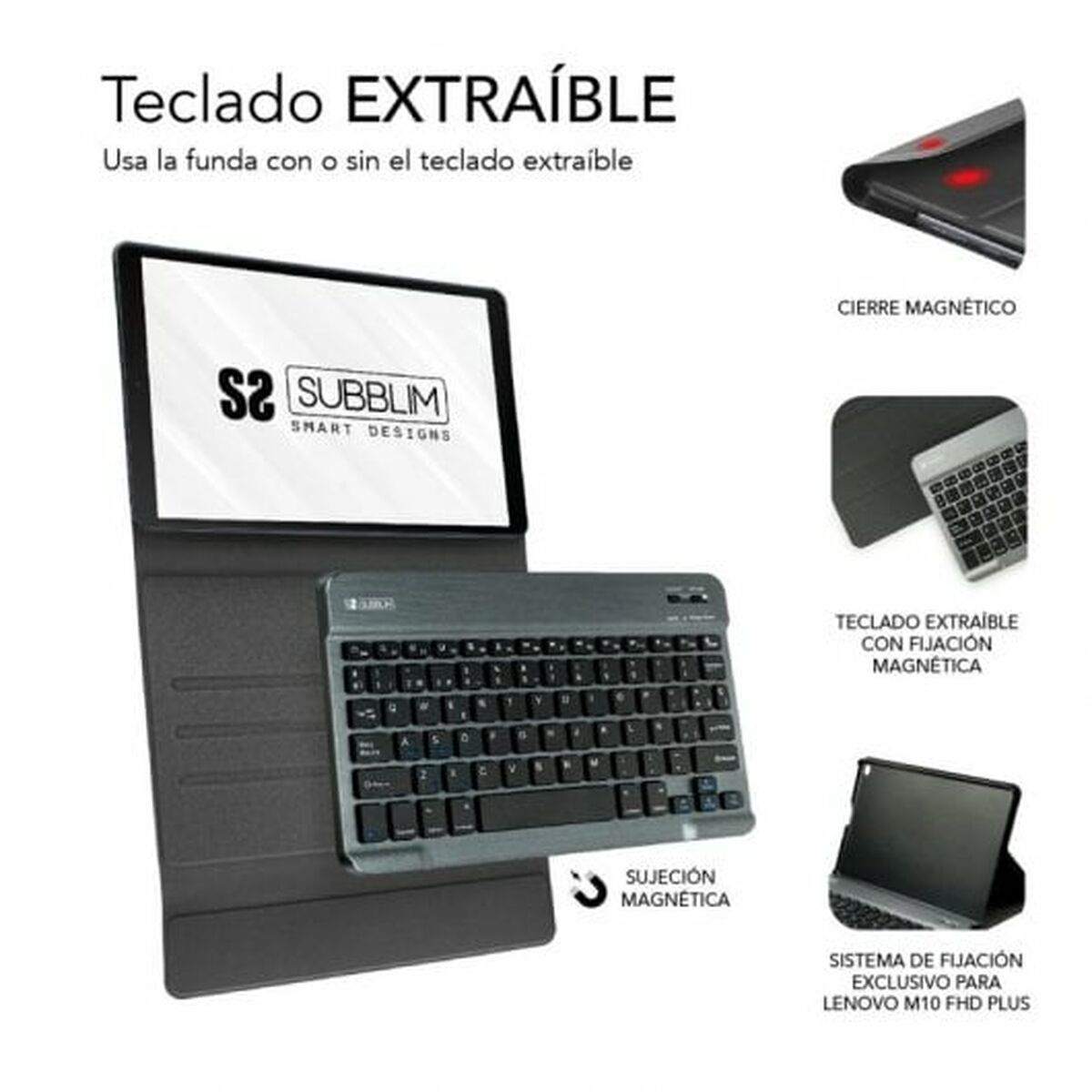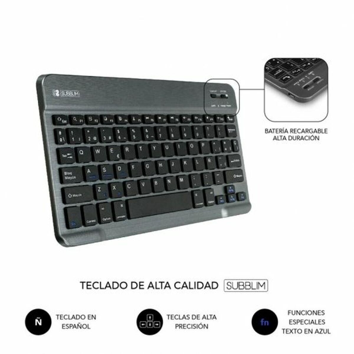 Teclado Bluetooth con Soporte para Tablet Subblim SUBKT3-BTL200 Negro Qwerty Español