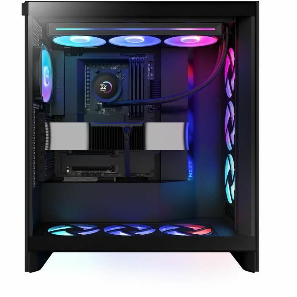 NZXT Kraken Plus 360 RGB. Tipo: Sistema de refrigeración líquida todo en uno, Velocidad de rotación (mín.): 500 RPM, Velocidad de rotación (máx.): 2400 RPM, Presión máxima de aire: 3,07 mmH2O, Tipo de soporte: Rodamiento dinámico fluido (FDB). Color del producto: Negro