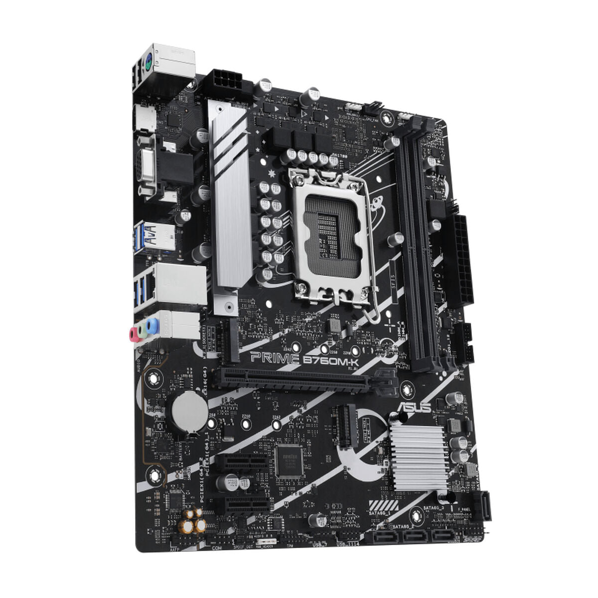 ASUS PRIME B760M-K. Fabricante de procesador: Intel, Socket de procesador: LGA 1700, Procesador compatible: Intel® Celeron®, Intel® Pentium® Gold, Intel® Core™ i3, Intel® Core™ i5, Intel® Core™.... tipos de memoria compatibles: DDR5-SDRAM, Memoria interna máxima: 96 GB, Tipo de ranuras de memoria: DIMM. Interfaces de disco de almacenamiento soportados: M.2, SATA III, Tipos de unidades de almacenamiento admitidas: HDD & SSD, Niveles RAID: 0, 1, 5, 10. Tipo de interfaz ethernet: 2.5 Gigabit Ethernet. Componente para: PC, Factor de forma: micro ATX, Familia del chipset: Intel
