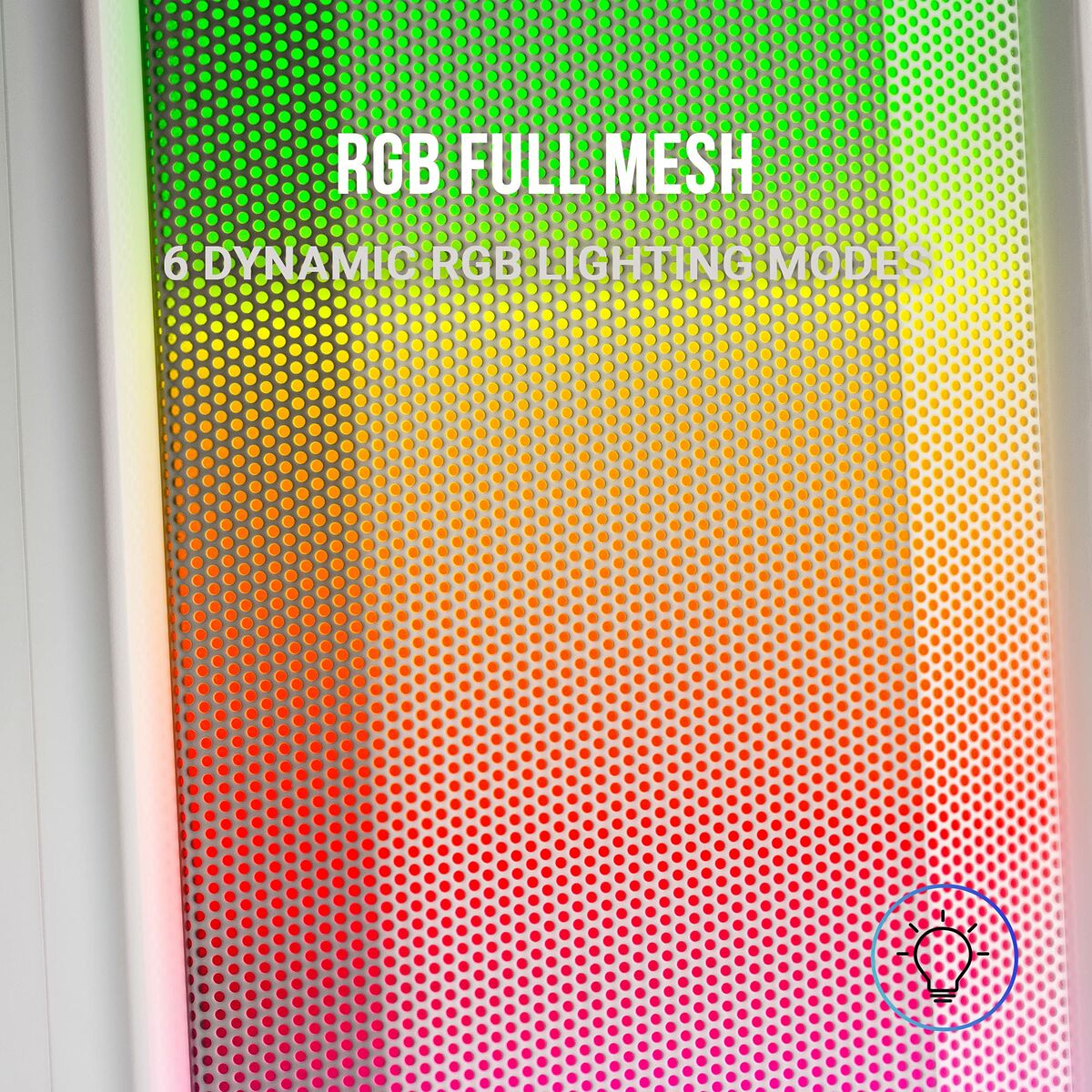 Llena de luz y color tu setup con un impresionante sistema de iluminación RGB TOTAL MESH. Selecciona entre los 6 espectaculares modos de iluminación dinámica RGB gracias a su sistema táctil en la caja de control.