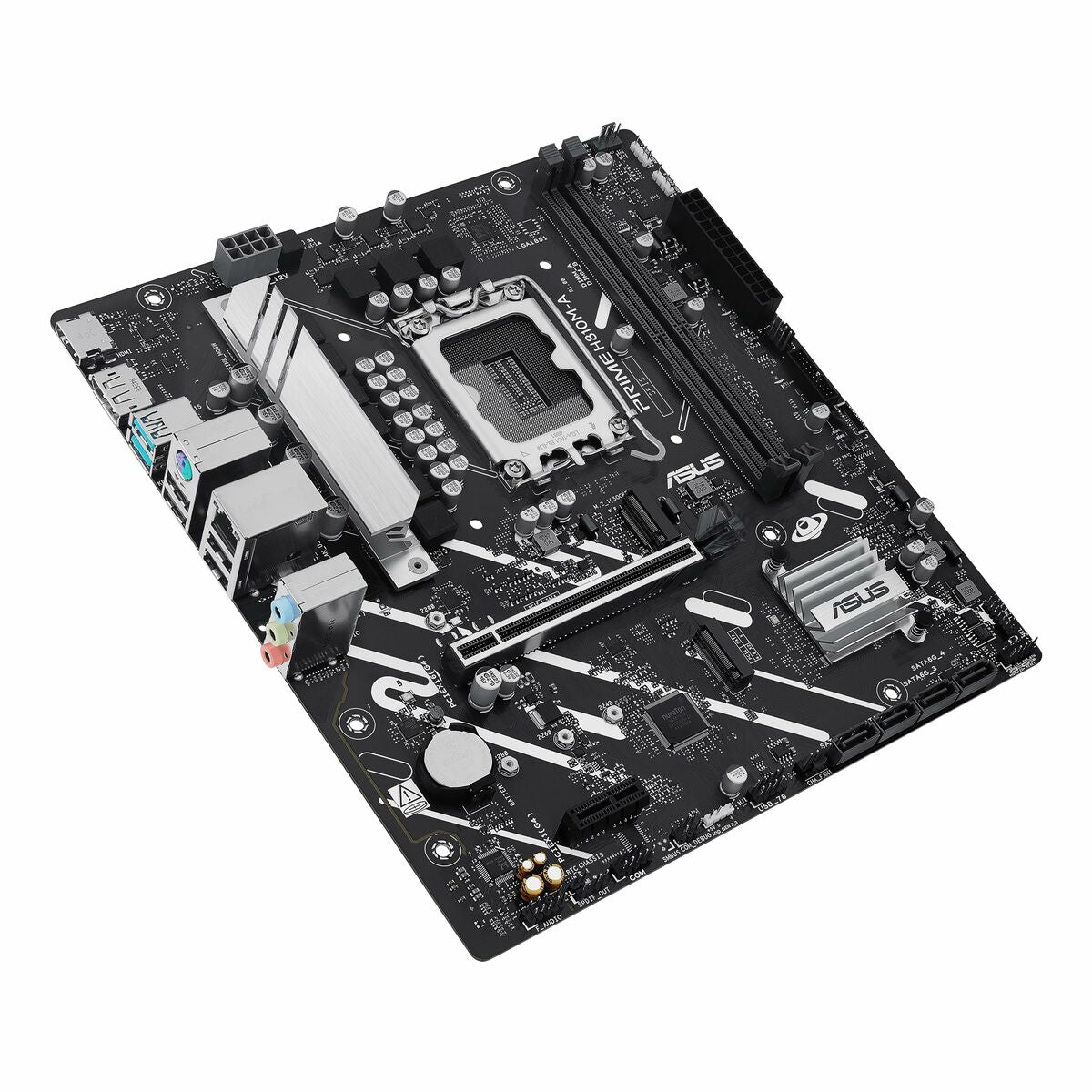 ASUS PRIME H810M-A-CSM. Fabricante de procesador: Intel, Socket de procesador: LGA 1851 (Socket V1), Procesador compatible: Intel Core Ultra (Series 2). tipos de memoria compatibles: DDR5-SDRAM, Memoria interna máxima: 128 GB, Tipo de ranuras de memoria: DIMM. Interfaces de disco de almacenamiento soportados: M.2, PCI Express 4.0, SATA III, Tipos de unidades de almacenamiento admitidas: HDD & SSD. Tipo de interfaz ethernet: Gigabit Ethernet, Controlador LAN: Intel I219V. Componente para: PC, Factor de forma: micro ATX, Familia del chipset: Intel