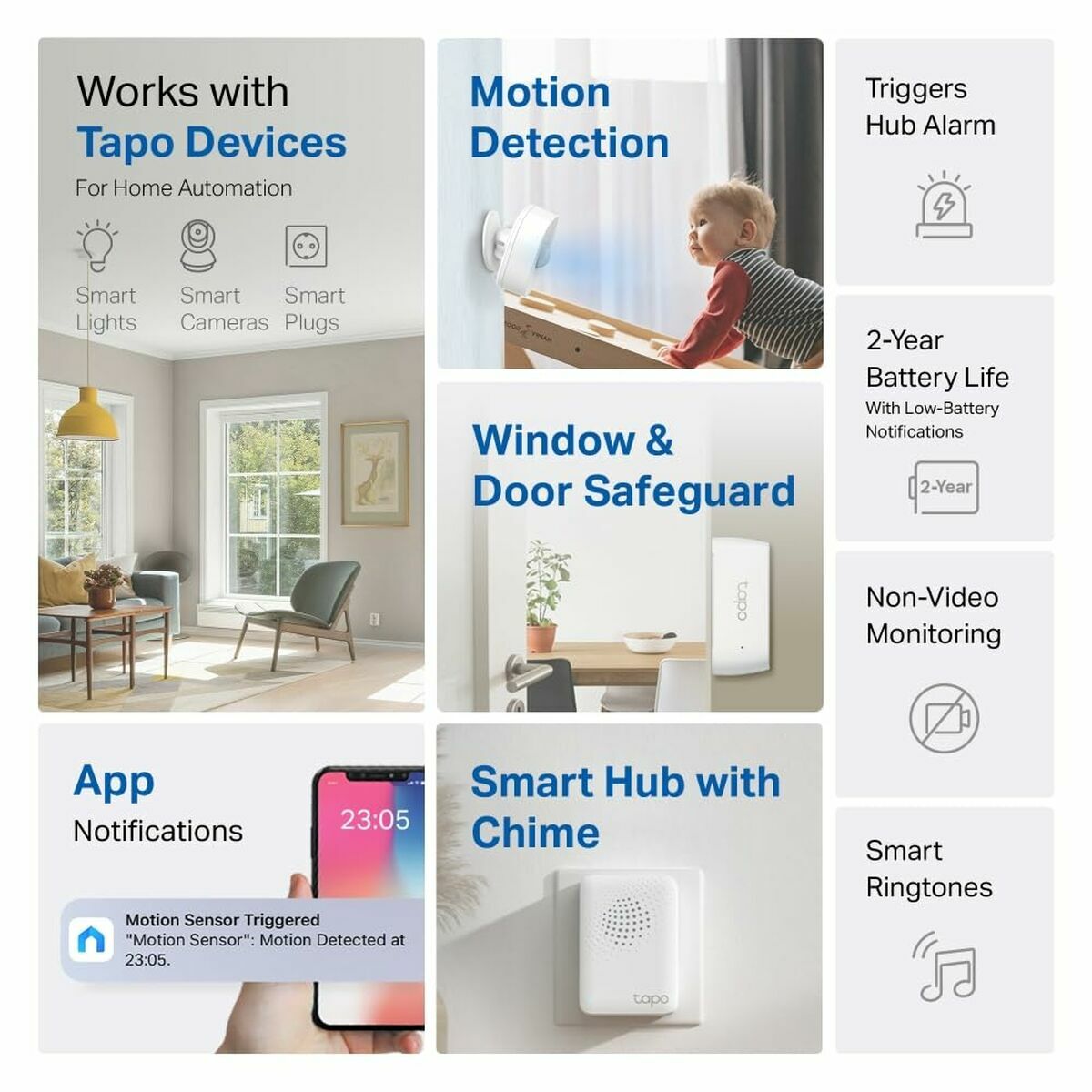 TP-Link TAPO T30 KIT. Parámetros de medición: Motion, Tecnología de conectividad: Inalámbrico, Tecnología inalámbrica: Wi-Fi. Fuente de energía: Batería, Duración de batería: 2 año(s). Cantidad por paquete: 4 pieza(s). Certificados de conformidad: CE, RoHS, UKCA